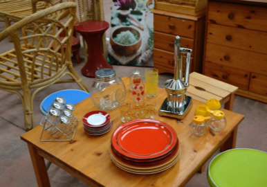 Dans le grand magasin, vous trouverez des meubles, de la vaisselle, des objets de décoration, des luminaires, des petis appareils électroménager, des jouets, … bref, un peu de tout !